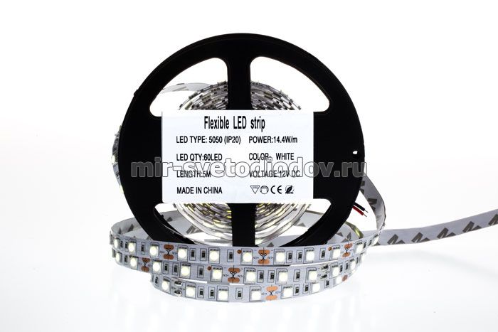 Светодиодная лента класса А. Тип светодиода 5050, 60 светодиодов на метр. Напряжение 12V, мощность 14.4W. Световой поток 10-12 Lm. Класс защиты IP20. Катушка 5 метров. Лента предназначена для декоративной подсветки ниш и контурного освещения предметов интерьера. Она незаменима при решении сложных дизайнерских задач по световому оформлению торговых залов, ресторанов, баров, ночных клубов. Монтируется на поверхность с помощью двустороннего скотча 3М.